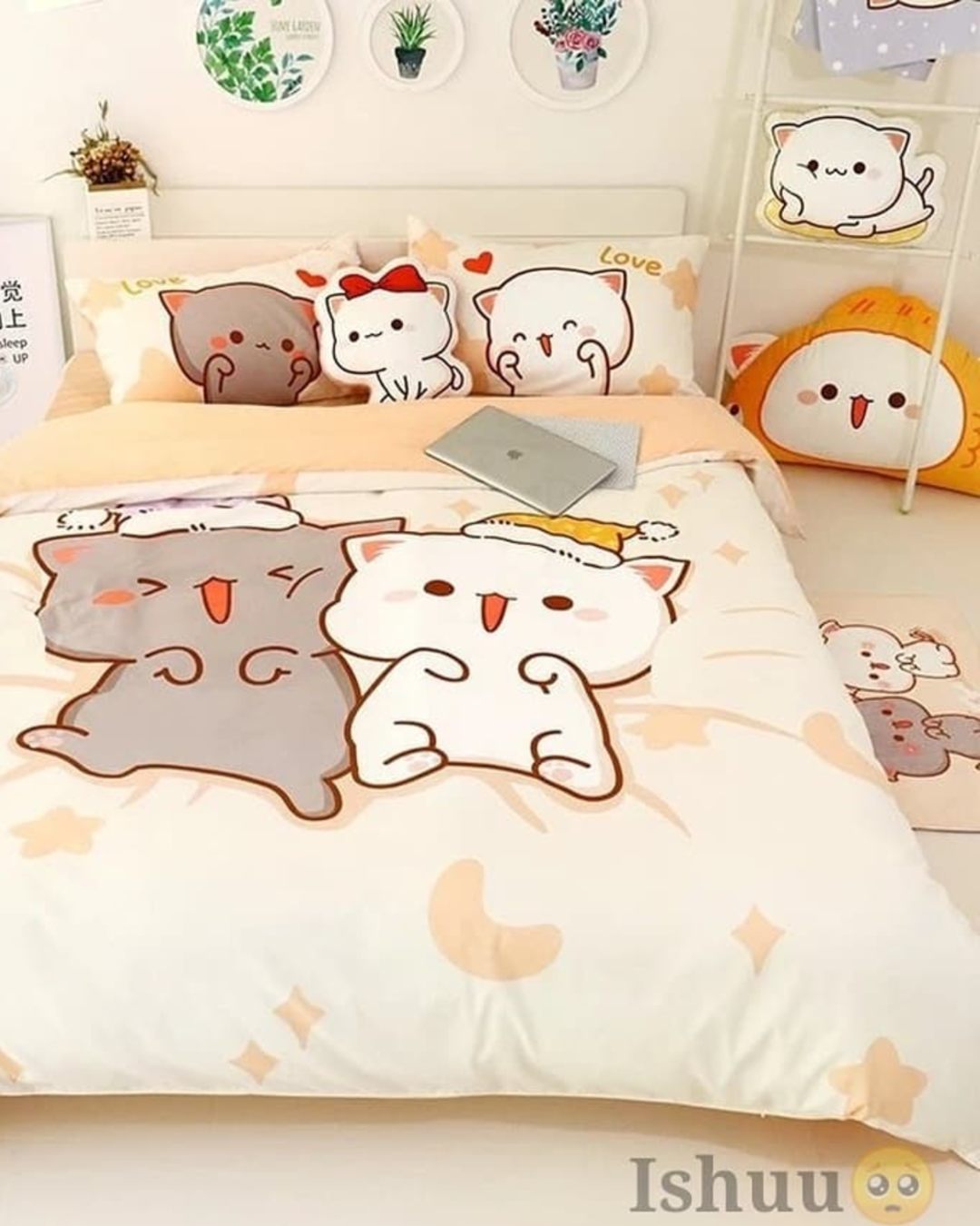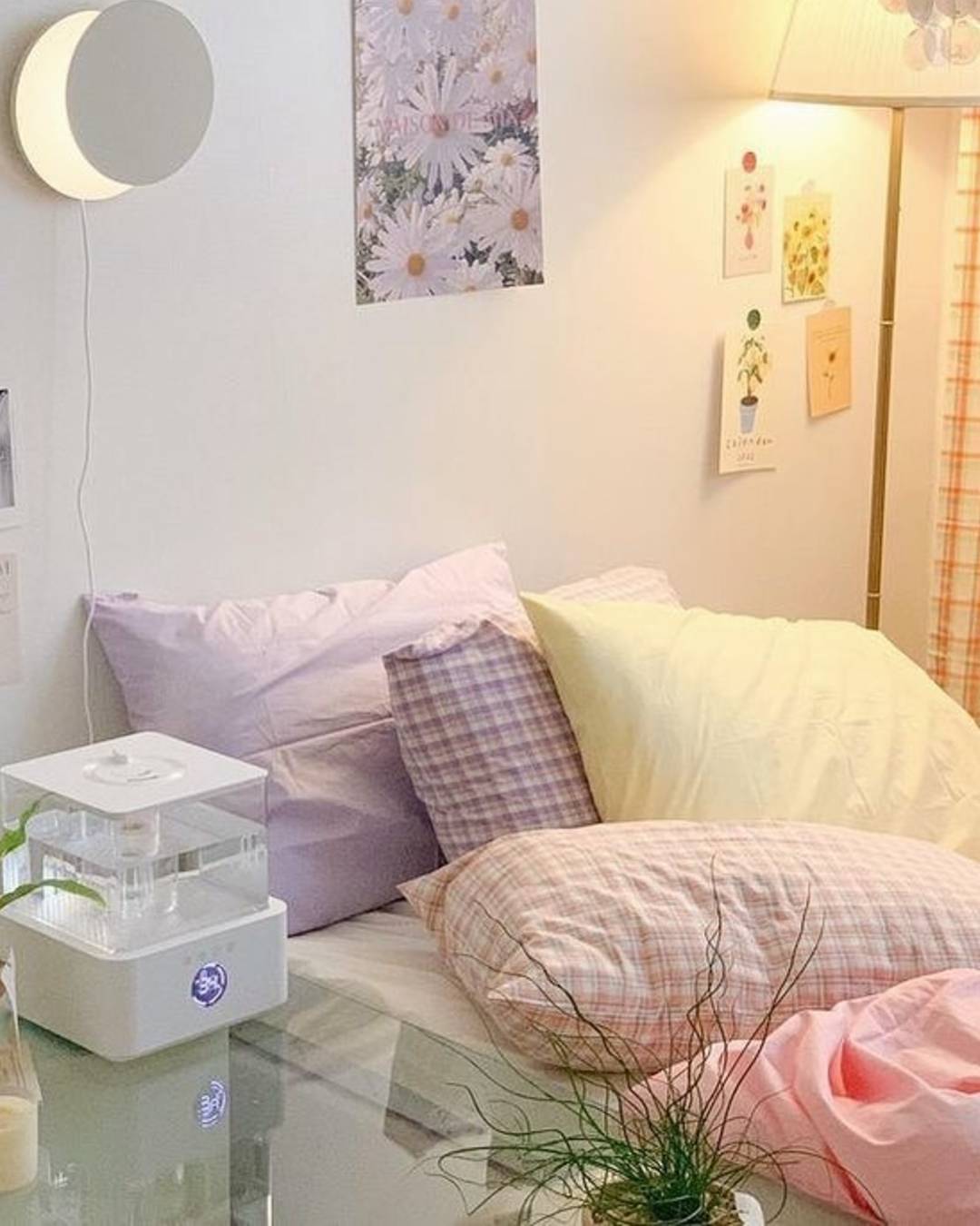 - Cobertores, almohadas y cojines también se pueden convertir en la tendencia kawaii de decoración aesthetic