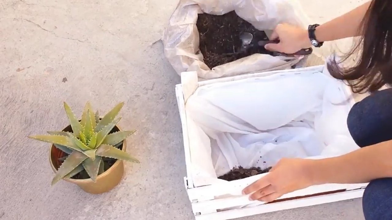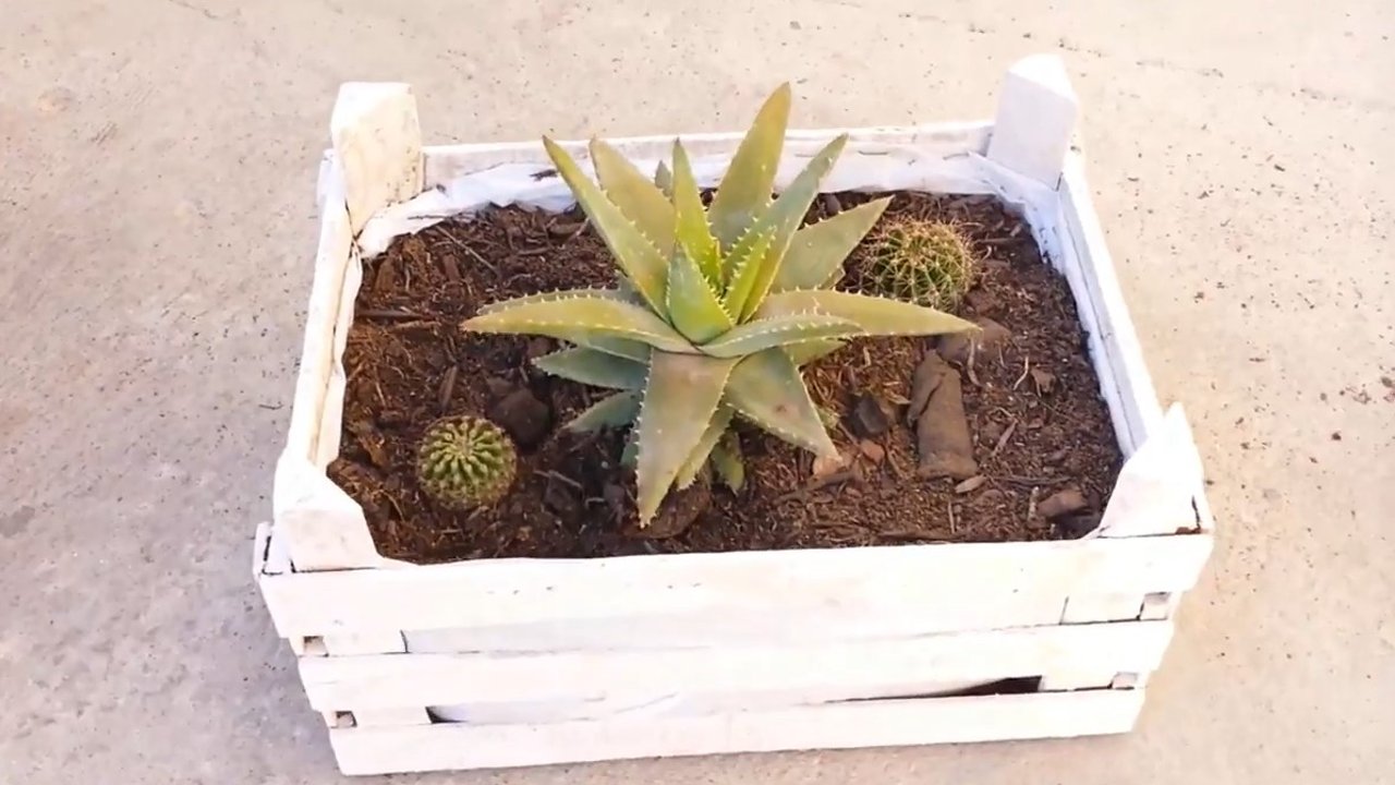 Las macetas con cajas de madera son hermosas | Fuente: Youtube @Alejandra Arana