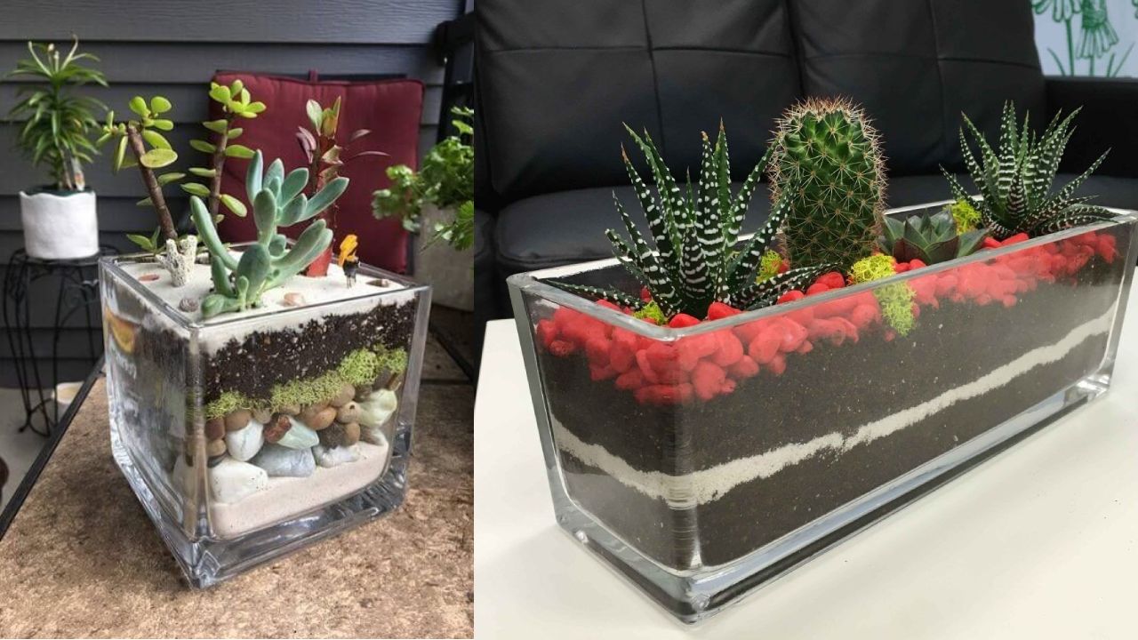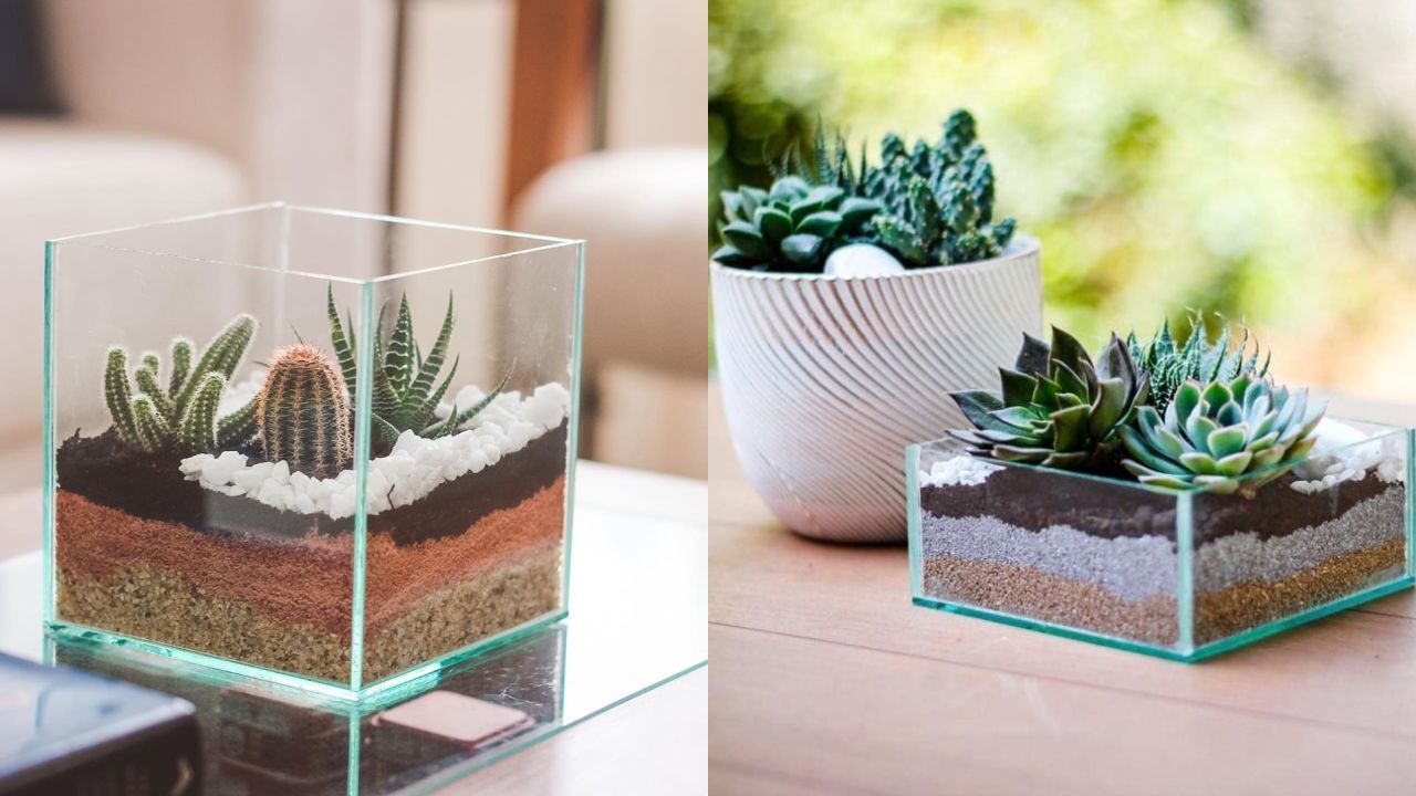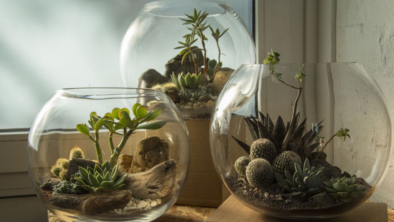 Puedes hacer un pequeño terrario y colocarlo donde más te guste, eso sí, recuerda que estas plantas requieren de mucho sol.