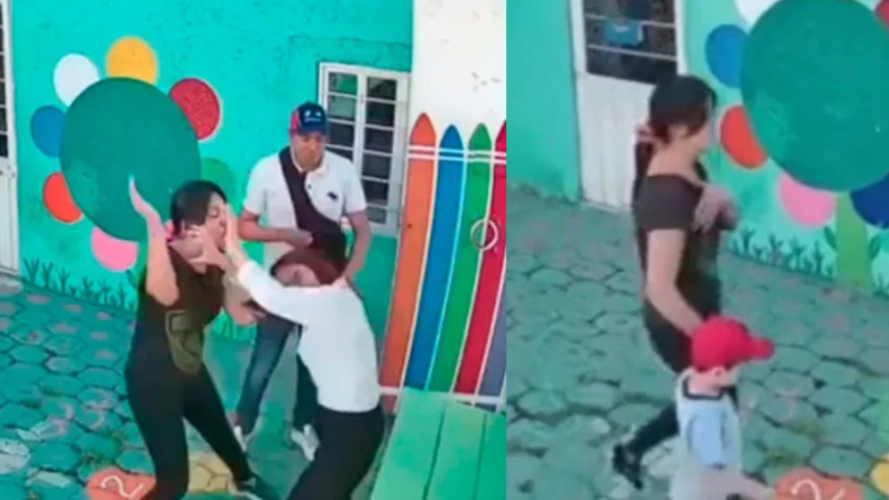 Cristopher reía mientras que sus padres agredían a su profesora de kínder; más tarde se supo que la mujer no era la maestra del pequeño en el kinder Frida Kahlo en Lomas de Cuatitlán.