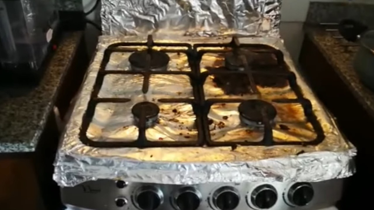 Aunque es una tradición, cubrir la estufa con papel aluminio no es lo mejor | Fuente: Youtube @Alba Coello Rivas