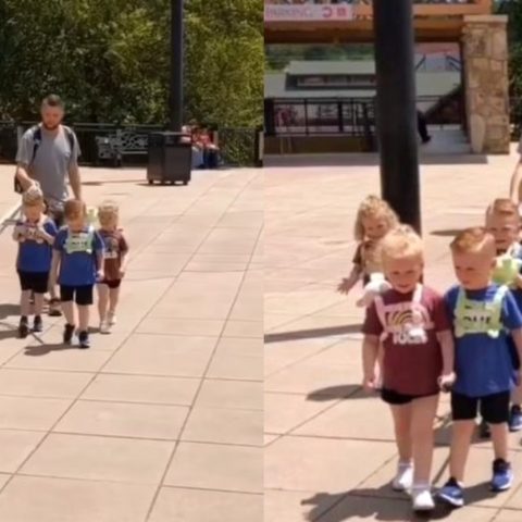 ¿Lo harías? Critican a un papá por sacar a sus hijos a pasear con correa