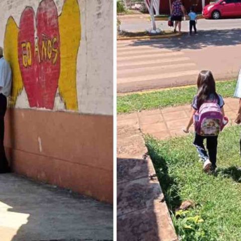 ¡El mejor abuelito! Hombre de 88 años lleva diario a su bisnieta a la escuela y la espera a la salida
