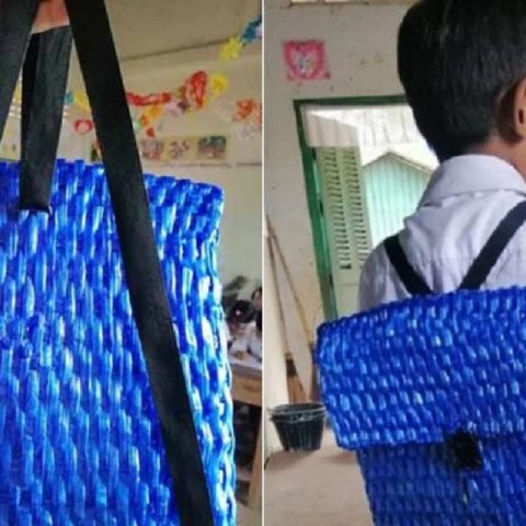 Padre de bajos recursos teje con sus propias manos una mochila para su hijo, ¡querer es poder!