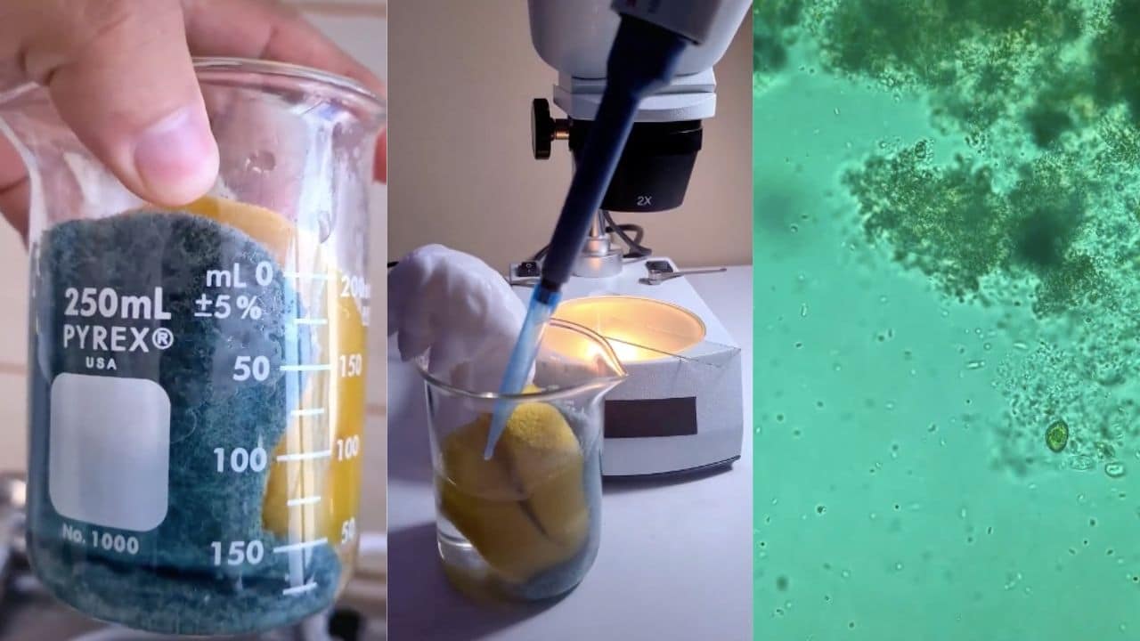 El equipo detrás del perfil, puso a remojar una esponja vieja en agua por unas horas y la llevó al laboratorio para tomar una muestra y, sobre el portaobjetos, analizarla a detalle.