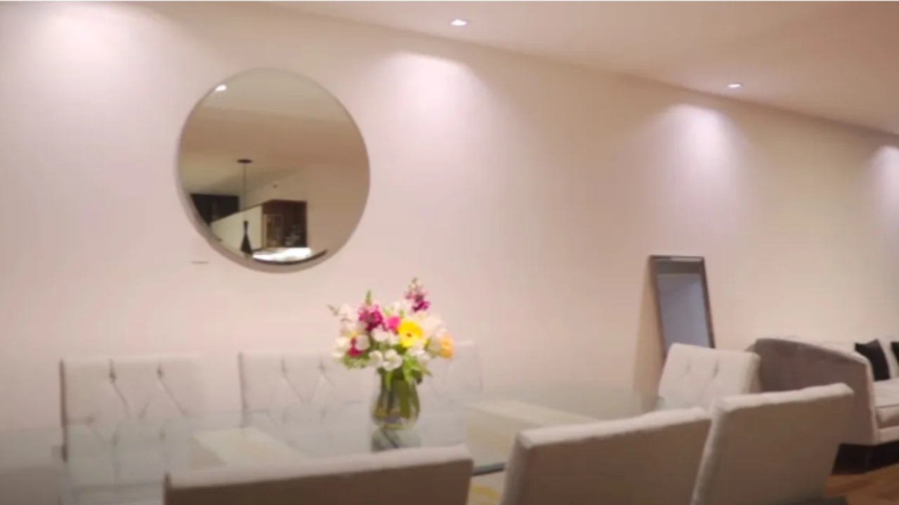 En cuanto a la decoración, cuenta con un cuadro que fue hecho por su madre y lo anima a perseguir sus sueños. Las paredes son blancas y hay muchos espejos, uno redondo detrás del comedor, la mesa de centro de la sala tiene uno, hay uno de cuerpo entero también en la sala, en su estudio hay dos más, uno en su tocador con luces para maquillarse y otro más de cuerpo entero con luces.